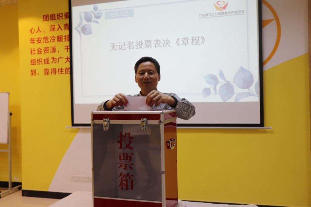 2019年4月14日下午,广东省社工与志愿者合作促进会(以下简称“社志会”)第二届第二次会员大会暨第四次理事会于广州市天河区沙太南路66号9号楼一楼大厅(广东12355青少年综合服务平台)举行。大会由社志会秘书处项目主管冼嘉瑶主持。社志会会长谭建光教授、常务副会长胡东辉、常务副会长汪彩霞、副会长涂敏霞教授、副会长兼秘书长林锐斌、监事长刘思博以及理事会成员等参加会议,本次大会共有62人参加会议。